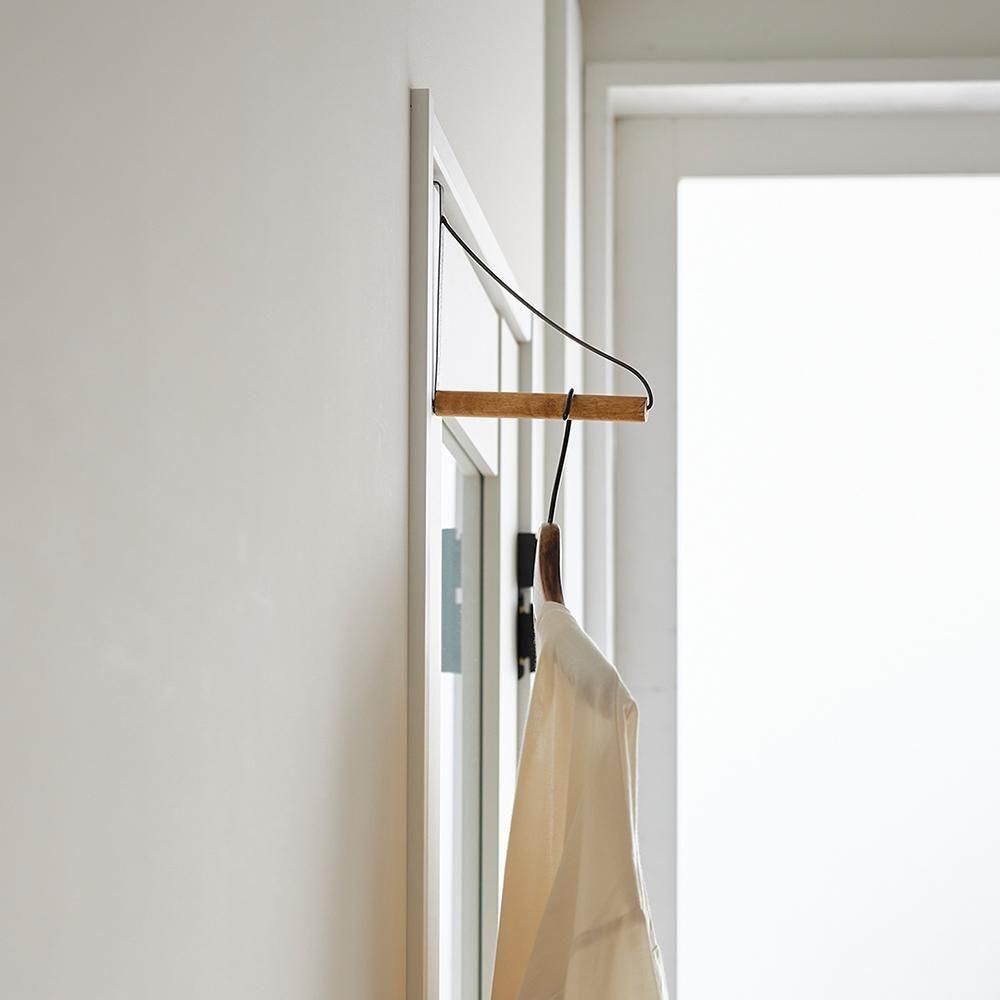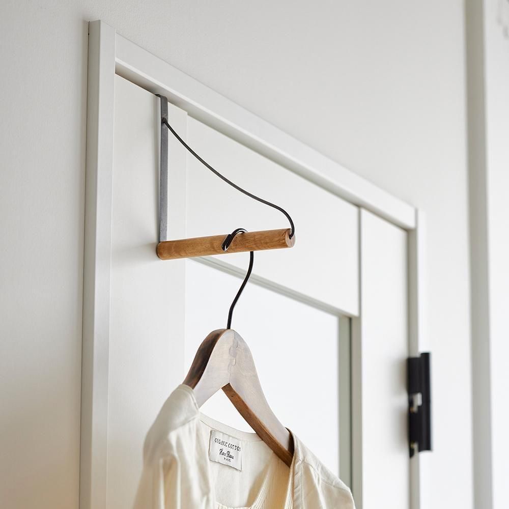 室内ドアに引っかけて使うドアフック。バーの部分はウッドで出来ているのでインテリアに馴染みやすいデザインです。洋服やストールなどの一時置きにぴったり。植物やオーナメントを飾るフックとしてもご使用いただけます。