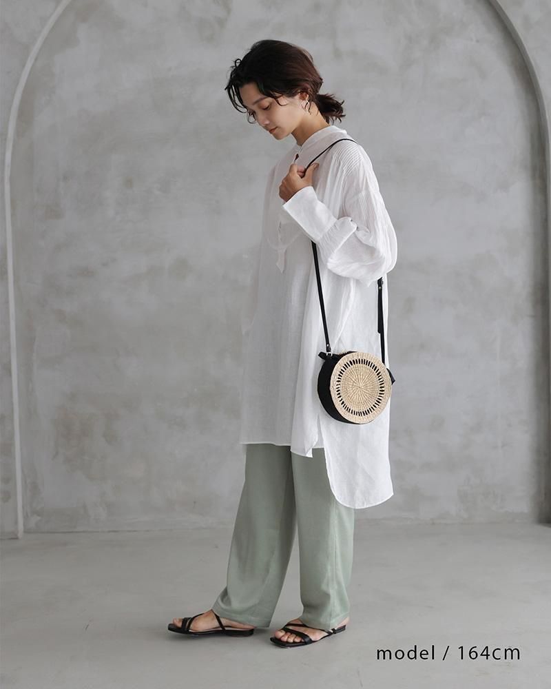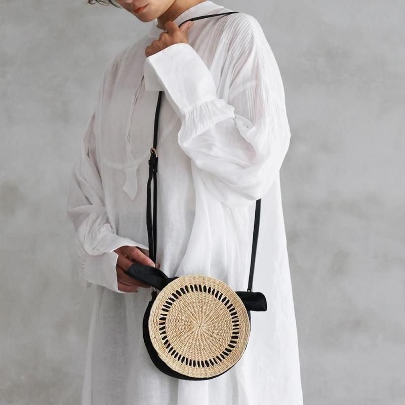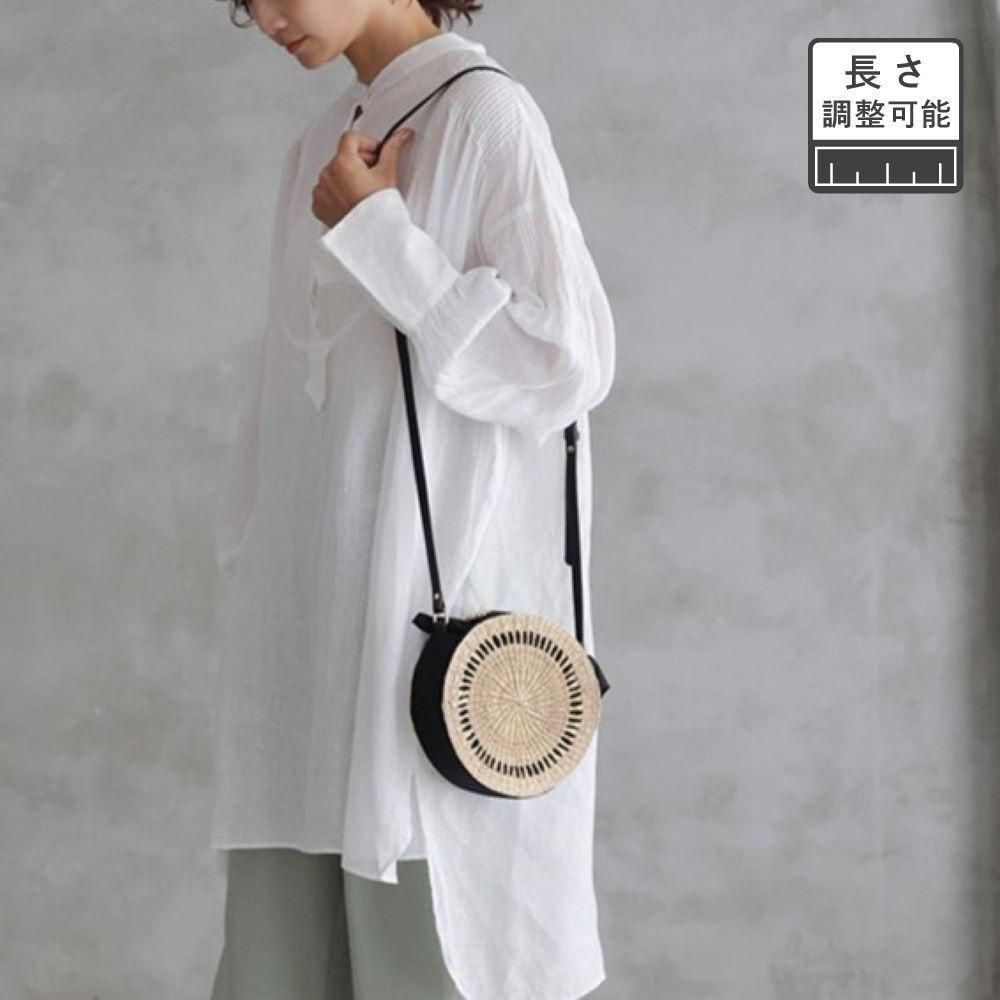季節感を高める天然素材のショルダーバッグ。丸みを帯びたフォルムと透かし編みがキャッチーで春夏コーデのポイントになります。PUレザーのショルダーストラップが、ナチュラルなアイテムを洗練された印象にしてくれます。使い込むほどに光沢や色味に深みが増し、味の出るシーグラスは経年変化を楽しめる魅力的な素材です。
